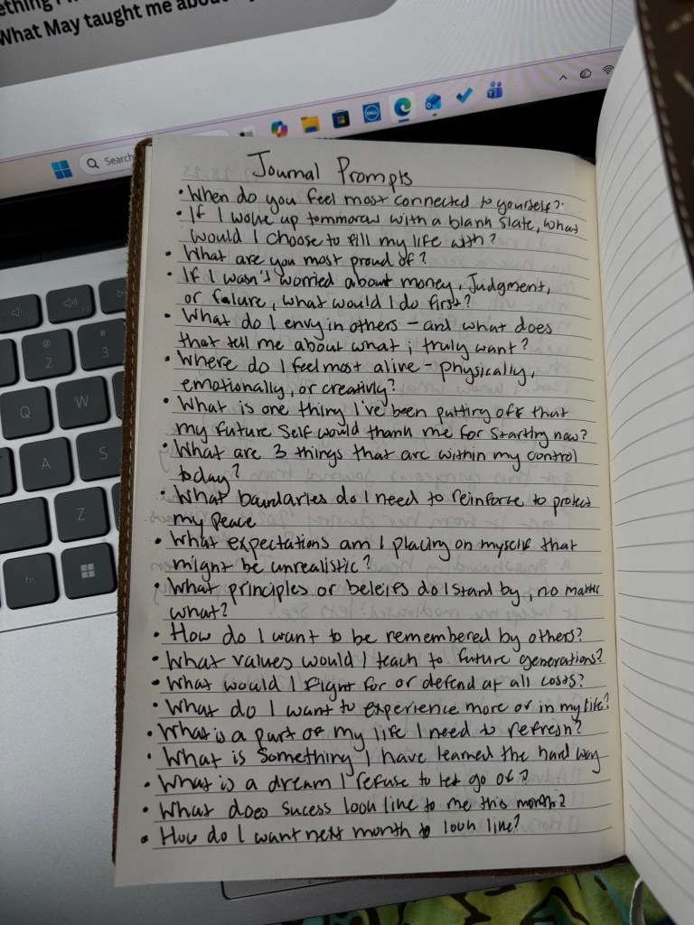 Each year I keep a journal starting from the first of the year till it is filled up. On the first page I always put my intentions for the year. This habit that I have created all those years ago have really shown my personal progress that I have made. It’s fun to look back and see how I have changed and what goals I have achieved. This year I am challenging myself to journal each night. One way I am going to do this is by giving myself journal prompts. On the second page of my journal I am going to write prompts that I can answer if I feel like I have nothing to journal about. That way I can’t make the excuse ‘I have nothing to say’. Below I have shared with you some of the prompts that I have put in my journal this year. Also, if you are new to journaling check out my post on “How to Get into Journaling: A Beginner’s Guide”
